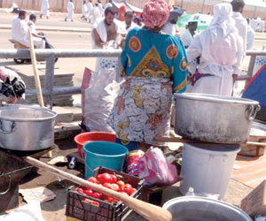 سيدات من القارة السمراء، هن من يعملن في الطبخ والبيع أيضا لا وجود لعاملين ذكور، هم من المشترين ومتناولي تلك الوجبات فقط، وتتمتع أولئك النسوة في الغالب ببنية جسدية قوية، وتحمل عال لضغط العمل، وحرارة الأجواء، ويعملن بحركة سريعة في الطبخ، وتجهيز الوجبات، ومع تلك الوجبات يسوقّن للمشروبات الغازية والمياه وبعض مستلزمات الحجاج.
