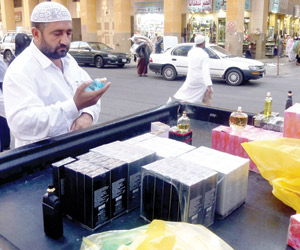 ورصدت "الوطن" أثناء جولتها في المنطقة المركزية وجود كميات كبيرة من أنواع العطور المقلدة للماركات الأصلية يتم بيعها من قبل المحلات التجارية والبسطات المجاورة بأسعار رخيصة لا تتجاوز 10 إلى 20 ريالا وتجذب العديد من الحجاج.