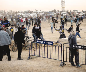 في غضون ذلك، تظاهر نحو ألفي شخص في إسرائيل والقدس الشرقية المحتلة وقطاع غزة ضد مشروع قانون إسرائيلي يهدف لتهجير عشرات آلاف البدو وإزالة قراهم في صحراء النقب جنوب إسرائيل. وتحولت التظاهرات إلى مواجهات بالحجارة مع الشرطة الإسرائيلية وأدت إلى اعتقال نحو 50 متظاهرا وإصابات في صفوف الشرطة.