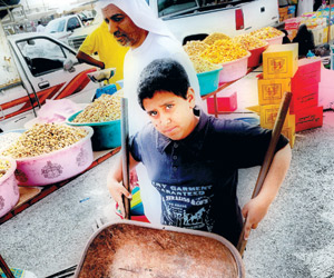 ويخرج خالد من السوق كل مساء وفي جيبه مبلغ يتراوح من 80 إلى 150 ريالاً، تساعده في قضاء حاجياته اليومية.