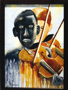 وتروي تسنيم قصة التماهي مع صورة الطفل عازف الكمان الباكي، وتجسيدها في لوحة، قائلة: "انجذبت لهذه الصورة بطريقة جنونية لأن دموع الطفل أثارتني، فبحثت عن قصته، وأعجبت بحكايته، التي تركت أثرا كبيرا نفسيا؛ لدرجة أنني تخيلت نفسي مكانه فلم أتردد لحظة واحدة بأن تكون إحدى لوحاتي؛ مع العلم أن الصورة توصف بأنها ضمن أكثر الصور إثارة للمشاعر في التاريخ الحديث"، أما إذا كان رسم اللوحة يتم على مراحل أم أنه يأتي دفعة واحدة، فتوضح: "لقد استغرق رسم اللوحة أسبوعا تقريبا".