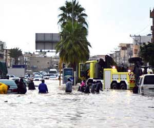 كما أدت الأمطار إلى احتجاز عدد من معلمات الثانوية الرابعة داخل مدرستهن، وتكفل أحد المواطنين بإيصالهن بسيارته الخاصة ذات الدفع الرباعي، فيما رصدت "الوطن" سقوط أسوار بعض المنازل في أحياء البلد والمرجان.