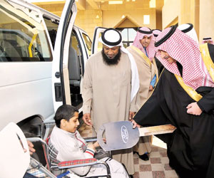 سلم أمير منطقة تبوك الأمير فهد بن سلطان، في مقر الإمارة أمس مفاتيح ثلاث سيارات مجهزة ومخصصة للمعاقين وذوي الاحتياجات الخاصة لأولياء أمور المعاقين الذين يمثلون المرحلة الأولى، وعددها 52 سيارة.