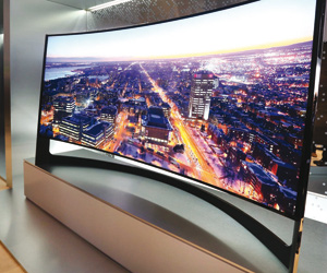 وكشفت سامسونج خلال المعرض العالمي عن أكبر تلفزيون مقوس يعمل بتقنية UHD في العالم، بقياس 105 بوصات بنمط صورة بقياس 21:9 وبدقة صورة قياسها 2160X5120 بكسل (11 مليون بكسل).