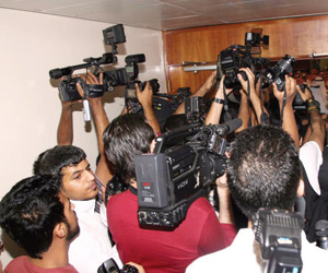 مشهد المشادة التي حصلت بين رئيس الاتحاد المكلف جمجوم والإعلامي البكيري، حوّل المظهر الجميل الذي كانت تسير عليه الانتخابات، إلى ساحة أشبه بما يحدث في المزادات التجارية، من لغة حوار وصراخ، اكتمل باستعانة الإدارة ورئيس مكتب رعاية الشباب بجدة أحمد روزي برجال الأمن لإخراج الإعلاميين من داخل القاعة في محاولة منهم للتعتيم على ما يدور بالداخل، لكنها تناست أن الإعلام الجديد كان حاضراً، فلم يكن مستخدمو مواقع التواصل الاجتماعي بحاجة إلى موجه، فخلال ثوان كانت ساحات التواصل تعج بكل ما يدور داخل القاعة من تطورات.