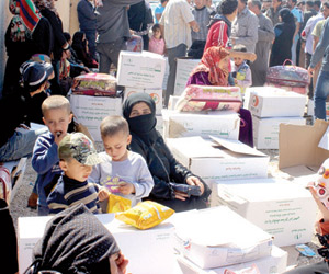 شهد مبنى مدينة الأمير محمد الرياضية بالأردن، جموعا كبيرة من اللاجئين السوريين؛ حضرت واستلمت ما قُدم لهم من مساعدات ومعونات سعودية، تاركين خلفهم دعوات ودموعا وأجواء ملؤها السعادة، جراء ما حصلت عليه أيديهم من مساعدات ومعونات وجهود متواصلة، من قبل الحملة الوطنية السعودية لنصرة الأشقاء في سورية، لتساعدهم على البقاء على قيد الحياة.
