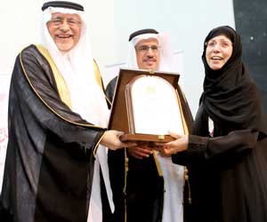 عقب ذلك كرم خوجة الدكتورة سعاد المانع، وتسلم درعا تذكاريا قدمه الدكتور عبدالله الحيدري.