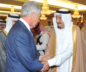 وشدد في كلمته الافتتاحية للاجتماع التشاوري لمجلس الدفاع المشترك لوزراء دفاع الخليج في جدة، بحضور وزير الدفاع الأميركي تشاك هاجل، على مواجهة التحديات بشجاعة. في حين أكد الوزير الأميركي أن المفاوضات المتعلقة بنووي إيران لا تعني إطلاقا المبادلة بالأمن الإقليمي، وأن التزام بلاده بأمن واستقرار الخليج لا يتزعزع.
