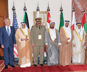 من جهته ألقى وزير الدفاع الأميركي تشاك هاجل كلمة أعرب فيها عن شكره الكبير لصاحب السمو الملكي الأمير سلمان بن عبدالعزيز على حسن الضيافة. كما عبر عن شكره لوزراء الدفاع بدول مجلس التعاون المشاركين في الاجتماع، متمنياً أن يخرج الاجتماع بالمزيد من التنسيق والتعاون الدائم بين جميع دول المجلس للعمل بشكل مشترك على حماية الأمن في هذه المنطقة المهمة جدا. وأوضح وزير الدفاع الأميركي أن التحديات الأمنية التي تواجه المنطقة تحتاج لاستجابة جماعية لمنع أي تعد أو عدوان إرهابي وتحقيق الاستقرار الدائم. وأشار إلى تطور التعاون المشترك بين الولايات المتحدة ودول المنطقة، وقال إن واشنطن لا تزال ملتزمة بقوة بالتعاون المشترك في مجال الدفاع مع دول الخليج.