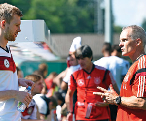 وغاب لام ونوير عن الأيام الأولى من معسكر منتخب ألمانيا في شمال إيطاليا بسبب الإصابة، إذ أصيب لام بكاحله ونوير بكتفه الأيمن مع "بايرن ميونيخ" في نهائي كأس ألمانيا ضد "بوروسيا دورتموند" (2-صفر)، حيث بقيا في ميونيخ وخضعا لعلاج مكثف من الجهاز الطبي للمنتخب.كما انضم مدافع "أرسنال" الانجليزي "بير ميرتساكر" إلى المنتخب الألماني بعد أن غاب عن الأيام الثلاثة الماضية إذ رزق بطفله الثاني.