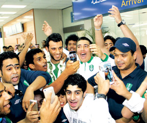 وكان في استقباله إداري الفريق الأول محمد شلية وجهاز العلاقات العامة بالنادي ومركز الأمير عبدالله بن فيصل بن تركي الذين طوقوه بالورود، ورحبوا به نجماً جديداً في النادي الأهلي.