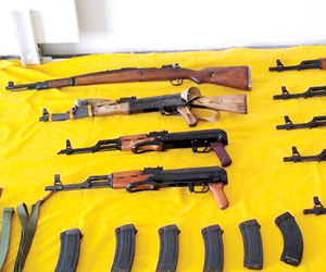 وأوضح الناطق الإعلامي لقيادة حرس الحدود في منطقة عسير العميد عبدالله أحمد الحمراني في تصريح صحفي أمس، أنه وأثناء متابعة رجال حرس الحدود اليومية بقطاع ظهران الجنوب وتأديتهم لواجبهم المعتاد، تمت مشاهدة مجموعة من الأشخاص يحاولون الدخول بطريقة غير مشروعة إلى الأراضي السعودية، وجرى اعتراضهم وبادروا بإطلاق النار على الدورية، فتم الرد عليهم بالمثل إلا أنهم تمكنوا من العودة لجهة قدومهم، وبمسح الموقع وتفتيشه عثر على8 رشاشات كلاشنكوف وبندقية بلجيك.
