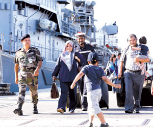 فيما وصل صباح أمس 50 شخصا بين فرنسيين وبريطانيين وتونسيين أجلاهم الجيش الفرنسي أول من أمس من ليبيا إلى ميناء طولون العسكري، جنوب شرق فرنسا.