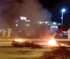 الناطق الإعلامي لشرطة منطقه تبوك المقدم خالد بن أحمد الغبان، أوضح عبر بيان صدر أمس: "بأنه عند الساعة العاشرة من مساء الأحد - أول من أمس - قام عدد من العمالة الموسمية المشاركة في مجمعات الهدي والأضاحي خلال موسم حج هذا العام 1435، والبالغ عددهم 1700 عامل، بإثارة الشغب بَعْدِ تأخر وصول العبارة الناقلة لهم من ميناء ضباء إلى ميناء سفاجة بجمهورية مصر العربية، وذلك بإغلاق الطريق الدولي على مدخل محافظة ضباء، وإشعال النار بالنفايات وإطارات السيارات، وقذف الحجارة على المارة".