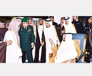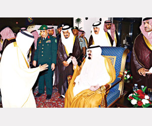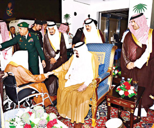 وفي ساحة المطار كان في استقباله أصحاب السمو الملكي الأمراء، والوزراء وكبار المسؤولين من مدنيين وعسكريين وجمع غفير من المواطنين.