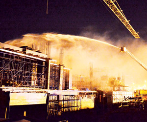 وذكر الناطق الإعلامي لمديرية الدفاع المدني بمنطقة تبوك العقيد ممدوح بن سليمان العنزي أن غرفة عمليات الدفاع المدني بمدينة تبوك تلقت بلاغا الساعة 11:47 مساء أول من أمس عن اندلاع حريق في مبنى تحت الإنشاء بجوار مستشفى الملك فهد التخصصي.