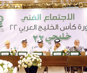 عقدت اللجنة الفنية لدورة كأس الخليج العربي الـ22 لكرة القدم اجتماعها الفني برئاسة مدير الدورة أحمد الخميس صباح أمس في فندق نارسيس الرياض، بحضور أعضاء اللجنة الفنية سعود المهنّدي وصالح الفارسي وسهو السهو ومحمد الظاهري وحميد الشيباني وطارق أحمد علي وإبراهيم البوعينين، بالإضافة لرؤساء اللجان العاملة، وهي اللجنة الطبية الدكتور رشيد التونسي واللجنة الأمنية العقيد عبدالعزيز الشثري واللجنة الإعلامية رجاء الله السلمي واللجنة الطبية برئاسة النيبالي "أجايا شيمشر" وعضو لجنة الحكام ممثل الاتحاد العربي لكرة القدم عصام عبدالفتاح، ومدراء المنتخبات المشاركة.