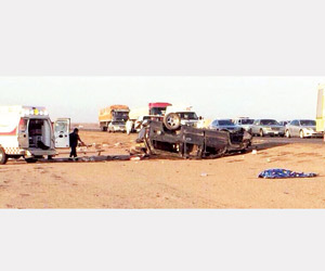 لليوم الرابع على التوالي يستمر كابوس حوادث المعلمات في قطف المزيد من أرواحهن، وإصابة عدد آخر منهن. فبعد حوادث الاثنين والثلاثاء والأربعاء التي أصيب وسقط فيها عدد كبير من المعلمات إضافة إلى طالبات تعليم عام وجامعي في عدد من مناطق المملكة، شهد صباح أمس حادث انقلاب مأساويا لخمس معلمات وسائقهن على طريق القصيم ـ المدينة المنورة، توفيت على إثره معلمتان وقائد المركبة على الفور، وأصيبت ثلاث معلمات أخريات.