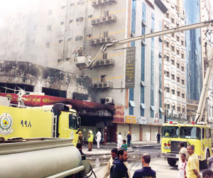 وأوضح المتحدث الإعلامي للدفاع المدني بالعاصمة المقدسة النقيب نايف الشريف بأن مركز التحكم والتوجيه بالإدارة تلقى بلاغا عن اشتعال النار في مبنى بحي الحفاير الواقع على طريق شارع أم القرى وجرى نقل ثماني وحدات إطفاء وانقاد مدعمة بسيارات السنوركل والسلالم لموقع الحادث وعند الوصول تبين أن الحادث عبارة عن اشتعال النار في مبنى مكون من دورين يستخدم مخزنا للملابس الجاهزة يقع ضمن منطقة الإزالة بين مبان عدة.