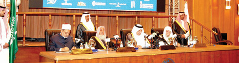 وقال خادم الحرمين "إنه على الرغم من تحقيق هذه الجهود وغيرها في الدول الإسلامية نتائج جيدة إلا أن الإرهاب ما زال يعبث بجرائمه هناء وهناك خاصة في الأوطان العربية والإسلامية التي تعرضت لاهتزازات وقلاقل، وإنه أمام هذا الخطر الداهم الذي يتمدد وتتداعى آثاره وتتنامى شروره يوما بعد يوم وتستعصي مواجهته الحاسمة فرادى وإدراكا من المملكة لواجباتها ومسؤولياتها تجاه أمتنا الإسلامية جاءت دعوتي لعقد هذا المؤتمر في إطار رابطة العالم الإسلامي لتشكيل منظومة إسلامية جماعية تتصدى لتشويه الإرهاب صورة الإسلام والمسلمين في العالم وتدرأ خطره العظيم على كيان أمتنا الإسلامية بل وعلى العالم أجمع بوضع خطة استراتيجية فاعلة نلتزم بها جميعا لمكافحة هذا الداء الوبال الذي هو صنيعة الفكر المتطرف لهؤلاء الجهال والعملاء واستلاب ساحة الفتيا الشرعية من غير أهلها ولي عنق النصوص الأصيلة لخدمة أغراض أصحاب هذا الفكر الدنيوية وتهييج مشاعر النشء والعامة واستدرار عواطفهم الدينية بمبررات ما أنزل الله بها من سلطان، وإني إذ أثمن عاليا تجاوب هذه القمم الفكرية الإسلامية لدعوتي وتداعيها إلى هذا المؤتمر بعلمها وخبراتها وإخلاصها لقضية الأمة الراهنة، أؤكد لكم أن أمتكم الإسلامية وكل شرفاء العالم على ثقة تامة بأن تصدر عن مؤتمركم الموقر نتائج عملية تعطي دفعا منظما وقويا للجهود المبذولة على مسار التصدي لهذه الظاهرة الدخيلة على عالمينا العربي والإسلامي وتقطع الطريق على الذين يستغلون هذه الآفة لخدمة أغراضهم ومآربهم على حساب مصالح أمتنا وأمن شعوبها واستقرار دولها وازدهار أوطانها".