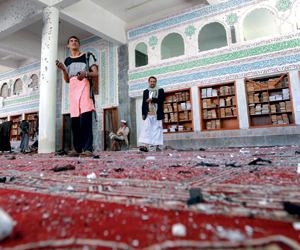 وألمح مسؤول يمني إلى وكالة أنباء الأناضول أن تكون العمليتان نفذتا على يد انتحاريين أثناء أداء صلاة الجمعة.