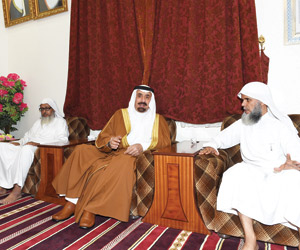 نقل أمير منطقة نجران الأمير جلوي بن عبدالعزيز بن مساعد أمس، تعازي خادم الحرمين الشريفين الملك سلمان بن عبدالعزيز وولي العهد نائب رئيس مجلس الوزراء صاحب السمو الملكي الأمير مقرن بن عبدالعزيز وولي ولي العهد النائب الثاني لرئيس مجلس الوزراء وزير الداخلية الأمير محمد بن نايف، في وفاة شيخ شمل قبائل المكارمة الشيخ عبدالله بن محمد المكرمي الذي انتقل إلى رحمة الله صباح أمس.