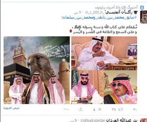 وبايع مغردون من جميع فئات المجتمع السعودي وأطيافه، وزير الداخلية الأمير محمد بن نايف وليا للعهد ووزير الدفاع الأمير محمد بن سلمان وليا لولي العهد على السمع والطاعة، عبر هاشتاق #نبايع_محمد_بن_نايف_ومحمد_بن_سلمان.