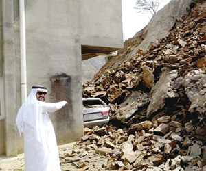 أدى انهيار جبلي على منزل شيخ قبيلة بني ظالم بمحافظة رجال ألمع تركي الرفيدي بعد ظهر أمس إلى تدمير إحدى السيارات الواقفة بجانب المنزل. وبين الرفيدي في تصريح إلى "الوطن" أن الانهيار وقع الساعة الواحدة ظهرا عقب صلاة الجمعة، موضحا أن هذا الانهيار من الجبل المجاور لمنزله في الجهة الغربية، وتقع أعلى هذا الجبل حديقة الربوة التابعة لبلدية المحافظة، وأنه نتج عن الانهيار تدمير إحدى السيارات. وتوقع الرفيدي حدوث بعض الصدوع في المنزل، لكنه لا يستطيع تأكيدها نظرا لأن أنقاض الانهيار لم تزل تغطي جزءا من الجهة الغربية من المنزل.