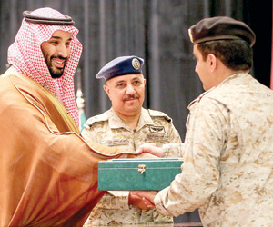 إلى ذلك، رعى الأمير محمد بن سلمان، أمس حفل تخريج الدورة الـ73 والدورة الـ42 جامعيين من طلبة كلية الملك عبدالعزيز الحربية، وذلك بمقر الكلية في الرياض.