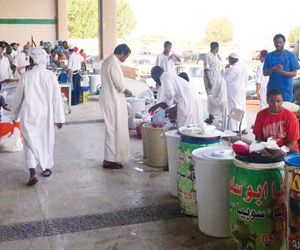وغير بعيد عن هؤلاء يقف مسن سعودي مناديا: الكبدة يا ولد الكبدة، بعدما أحضر صاجا حجازيا لتحضير الكبدة الطازجة على الطريقة الحجازية، ولم يتخل ذلك المسن عن التعريف بشخصه من خلال ارتدائه العمة الحجازية خلال عملية تحضير الكبدة، وهو ما يمنحه مزيدا من القبول لدى الزبائن المحليين، وفي زاوية أخرى حضرت أشرف بقاع الدنيا "مكة المكرمة" عبر بائع السوبيا الذي يتفنن في عرض منتجه بشكل مميز، بوضعه وسط قوالب من الثلج، بلونيه الأحمر القاني، والأبيض.
