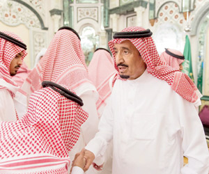 تقدم خادم الحرمين الشريفين الملك سلمان بن عبدالعزيز جموع المصلين في صلاة الميت على أمير منطقة الحدود الشمالية الأمير عبدالله بن عبدالعزيز بن مساعد عقب صلاة العشاء بالمسجد الحرام أمس. وأدى الصلاة على الفقيد مستشار خادم الحرمين الشريفين أمير منطقة مكة المكرمة الأمير خالد الفيصل، وصاحب السمو الملكي الأمير أحمد بن عبدالعزيز، وصاحب السمو الملكي الأمير مقرن بن عبدالعزيز، والأمير تركي الفيصل بن عبدالعزيز، وأمير منطقة الرياض الأمير فيصل بن بندر، والأمير محمد بن فهد، ووزير الدولة عضو مجلس الوزراء مستشار خادم الحرمين الشريفين الأمير الدكتور منصور بن متعب، وأمير منطقة عسير الأمير فيصل بن خالد، والأمير عبدالعزيز بن فهد بن سعد، وصاحب السمو الملكي الأمير سطام بن سعود بن عبدالعزيز، ورئيس الهيئة العامة للسياحة والتراث الوطني الأمير سلطان بن سلمان، ومحافظ جدة الأمير مشعل بن ماجد، وولي العهد نائب رئيس مجلس الوزراء وزير الداخلية الأمير محمد بن نايف، والأمراء. كما أدى الصلاة شقيق الفقيد أمير منطقة نجران الأمير جلوي بن عبدالعزيز، وأبناء الفقيد الأمراء منصور، ومساعد، وفهد، وسلطان، ومشعل، ومشاري، وسعد، وبندر، وتركي، وفيصل.