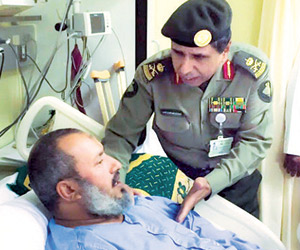 زار المدير العام للجوازات اللواء سليمان بن عبدالعزيز اليحيى المصابين الذين يتلقون العلاج بمستشفى قوى الأمن في الرياض، إثر التفجير الإرهابي الذي وقع بمسجد منسوبي قوات الطوارئ في منطقة عسير.