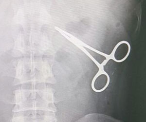 وأوضح المالكي أن "مسؤولي المراقبة بالمركز الصحي أجروا الكشف الظاهري على الحاج، ولما لم تتوافر أي أجهزة معدنية بحوزته، تم تحويله إلى غرفة الأشعة، وكانت المفاجأة التي أظهرتها الصورة الإشعاعية وجود مقص معدني مستقر داخل التجويف البطني له، وبإخبار الحاج أبدى استغرابه، وبسؤاله عن سبب وجوده أبدى عدم معرفته بذلك، وذكر أنه خضع لعملية جراحية في موطنه قبل 15 عاما، وتم إخباره بخطورة الوضع".
