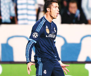 أحرز كريستيانو رونالدو هدفين ليقود ريال مدريد للفوز 2/ صفر على مضيفه مالمو السويدي في دوري أبطال أوروبا لكرة القدم أول من أمس ويعادل رقم راؤول هداف الفريق الإسباني عبر العصور.