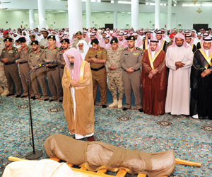 وأدى الصلاة مع أمير المنطقة وكيل الإمارة عبدالعزيز الحميدان، ومدير شرطة القصيم اللواء بدر الطالب، وقائد معهد طيران القوات البرية بمنطقة القصيم اللواء طيار ركن عبدالله الطويلعي، ومحافظ البدائع عبدالرحمن السديس.