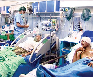 ورغم انتهاء الحرب في أبين ورفع الحصار عنها إلا أن مستشفيات المدينة وعددها نحو عشرة مستشفيات، أبرزها مستشفى الرازي المركزي، لا تزال تعاني من نقص حاد وانعدام لكثير من الأدوية والمحاليل الطبية. حيث يقول المدير العام لمكتب وزارة الصحة والسكان العامة في المحافظة الدكتور على منصور، في حديث مع "الوطن"، إن مستشفيات المحافظة ونحو 16 مركزا صحيا و124 وحدة صحية، إضافة إلى مراكز الأمومة والطفولة، تعاني جميعها من نقص في توفير الأدوية والعلاجات، خصوصا المحاليل الطبية الخاص بالفحوصات المخبرية والأجهزة الطبية. مشيرا إلى أن استمرار الحرب والمعارك التي تشهدها مديرية "مكيراس" المحاذية لمحافظة أبين يشكل ضغطا كبيرا على مستشفيات أبين التي تعاني نقصا في الإمكانات.