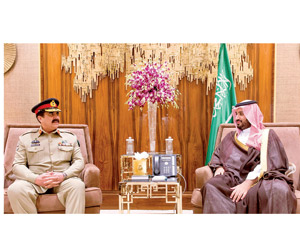 كما اجتمع الأمير محمد بن سلمان بقائد الجيش الباكستاني الفريق أول ركن راحيل شريف، حيث تم استعراض أوجه التعاون القائم بين البلدين، لا سيما في المجال العسكري، والسبل الكفيلة بدعمه وتطويره.