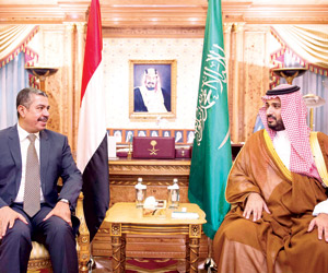 استقبل ولي ولي العهد النائب الثاني لرئيس مجلس الوزراء وزير الدفاع الأمير محمد بن سلمان في مكتبه بالمعذر أمس، نائب رئيس الجمهورية اليمنية رئيس مجلس الوزراء الدكتور خالد محفوظ بحاح.
