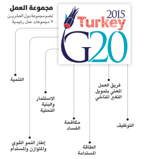 من المنتظر أن تبحث مجموعة دول العشرين خلال اجتماعاتها المقبلة في تركيا ملفات سياسية واقتصادية عدة، فيما من المرتقب أن تركز القمة على أربعة أولويات اقتصادية تتمثل في مواجهة بطء نمو الاقتصاد العالمي، توفير فرص العمل ودعم الشباب، زيادة نمو التجارة العالمية، وتعزيز الاستثمارات، في منعطف تسعى من خلاله هذه الدول للانتقال بالاقتصاد العالمي إلى حال أفضل ما هو عليه الآن، ولتعزز بذلك جهودها التي اتخذتها طوال الأعوام الماضية لمواجهة آثار الأزمة العالمية في العام 2008، خاصة في تعز يز مرونة النظام المالي العالمي.