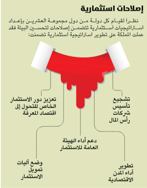 يدخل تطوير استراتيجيات الاستثمار لكل دولة، وهو ما تم عليه العمل خلال العام الحالي 2015، كأبرز المحاور التي تسعى من خلال دول المجموعة في القمة التي تعقد في مدينة أنطاليا التركية خلال يومي 15 و 16 من نوفمبر الجاري، للوصول إلى تكامل استراتيجي يحقق نتائج أفضل في البيئات الاقتصادية لهذه الدول التي تشكل نحو 85% من الاقتصاد العالمي، و75% من تجارة العالم، و65% من سكان العالم.