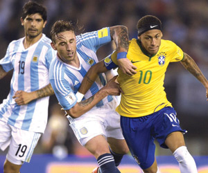 انتهى الكلاسيكو المنتظر في تصفيات أميركا الجنوبية المؤهلة إلى مونديال روسيا 2018 لكرة القدم بين الأرجنتين وضيفتها البرازيل بالتعادل 1/1 فيما حققت البيرو أول فوز لها بالتصفيات على حساب الباراجواي 1/صفر. وعجزت الأرجنتين عن تحقيق فوزها الأول في ثلاث محاولات، فأصبح رصيدها نقطتين في وصافة القاع، فيما رفعت البرازيل رصيدها إلى 4 نقاط في المركز الرابع بفارق 5 نقاط عن الإكوادور الوحيدة التي فازت بمبارياتها الثلاث حتى الآن. وتمر الأرجنتين بمرحلة حرجة، خصوصا من الناحية الهجومية، إذ يغيب عنها نجمها ليونيل ميسي بالإضافة إلى سيرخيو أجويرو وكارلوس تيفيز المصابين. أما فريق المدرب دونجا، فقد استعاد مهاجمه نيمار بعد إيقافه لأربع مباريات، لكنه لم يكن مقنعا.