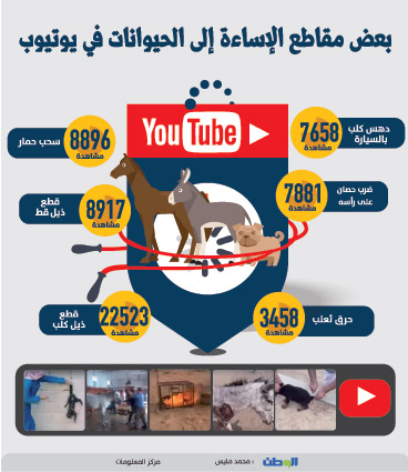 وأضاف الجهني، أن "الإنسان قديما كان يهتم بحماية الحيوانات نظرا لنفعها له، وبعد تطور العصور وتقدم البشرية لم يعد للحيوان فائدة، ومع توفر التكنولوجيا ومواقع التواصل أصبحنا نرى مشاهد تعذيب مروعة ومؤلمة يقوم عليها أشخاص غير أسوياء، حيث بات الحيوان وسيلة للتسلية والمتعة، وأصبح البعض يتلذذ بتعذيبه بوسائل مختلفة، كالآلات الحادة، أو الحرق، أو بقطع الأطراف وكأن هذا الحيوان جماد، ولا يشعر بالألم".