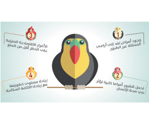 ونصح الدكتور المجالي دول الجوار بحذو المملكة في حظر استيراد طيور الزينة، واتخاذ نظرة أكثر حزما في استيرادها، وتشديد المراقبة الصحية للحدود، منعا لدخول الأمراض، مشيرا إلى أهمية برامج التحصين والتوعية، وبناء القدرات البيطرية للتعامل مع جميع طيور الزينة.