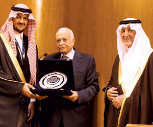 خيمت ذكرى وزير الخارجية السعودي الراحل الأمير سعود الفيصل، على أجواء احتفالية مؤسسة الفكر العربي بمرور 70 عاما على تأسيس الجامعة العربية أمس. وقال الأمين السابق لجامعة الدول العربية عمرو موسى في كلمته، إن "الأمير سعود الفيصل كان أنيقا وسيما وشهما ذا كبرياء، لا تلغي أبدا تواضعه، حيث كان رجلاً بكل ما في الرجولة من معنى، وأميرا بكل مضامين الإمارة من وقار واحترام، وكان إنسانا فاضلا حقا".