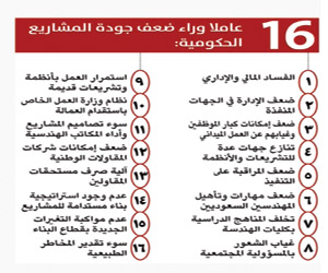 أوصت ورشة عمل حكومية بضرورة مراجعة كافة الأنظمة والإجراءات الحكومية وخاصة نظام المنافسات العامة، متسقة مع ما خلص إليه تقرير نشرته "الوطن"، في الـ30 من نوفمبر الماضي، ورصدت خلاله 16 عاملاً وراء ضعف المشروعات الحكومية.