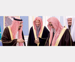 من جهة اخرى، استقبل الملك سلمان بن عبدالعزيز في قصر اليمامة أمس الأمراء ومفتي عام المملكة والمشايخ والوزراء وجموعا من المواطنين الذين قدموا للسلام عليه. وفي بداية الاستقبال أنصت الجميع لتلاوة آيات من القرآن الكريم، ثم تشرف الجميع بالسلام على خادم الحرمين الشريفين.