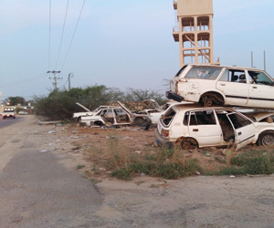 تسبب تكدس السيارات التالفة على مدخل قرية قنبورة شرق محافظة أبوعريش في تشويه المدخل.