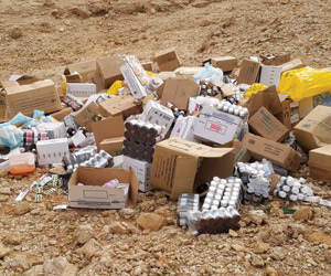 وباشرت اللجنة التحقيق صباح أمس مع مركز الصحنة الصحي، لمعرفة كيفية وصول هذه الأدوية إلى هذا الموقع، ورميها بطريقة غير صحيحة.