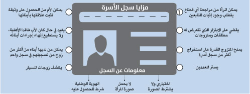 وأشار إلى أن "من فوائد سجل الأسرة أيضا إثبات الأم نسب أبنائها إليها، وبالتالي إثبات حقهم في الميراث، ويفيد أيضا في حال كان الأب فاقدا الأهلية، ولا يستطيع إنهاء إجراءات أبنائه"، إضافة إلى أن سجل الأسرة لا يفيد في سفر الأم مع الأبناء إلى خارج المملكة، حيث يستلزم ذلك موافقة من الجهات المختصة.