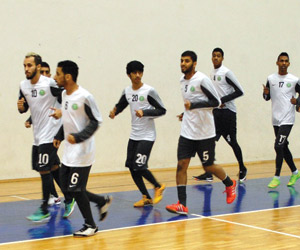 وأجريت تدريبات الفترة الصباحية في صالة الحديد بمقر إقامة الفندق، فيما أجريت تدريبات الفترة المسائية في الصالة المغلقة التي انطلقت بتمارين الإحماء، وبعدها قام الجهاز الفني بشرح عدد من الجمل الفنية والتكتيكية باستخدام الكرة، ثم أجريت مناورة على كامل الصالة بمشاركة جميع اللاعبين.